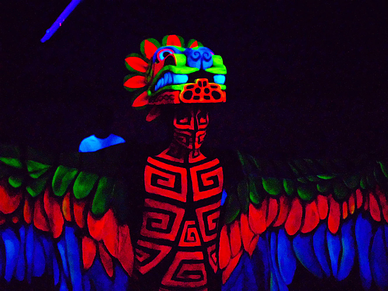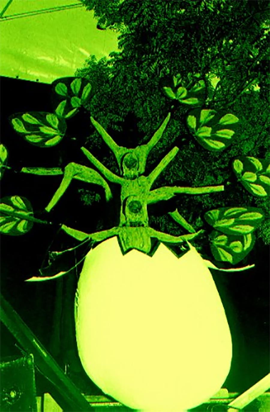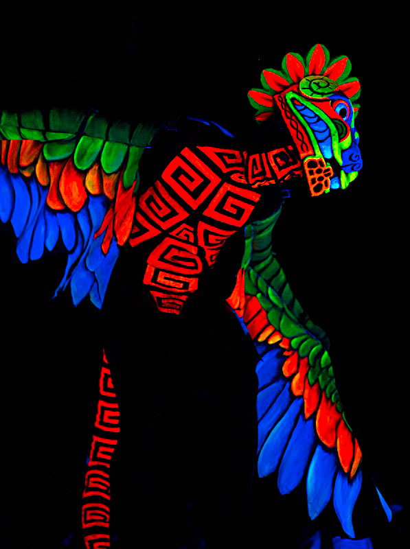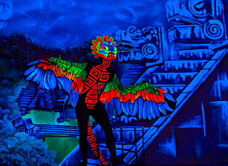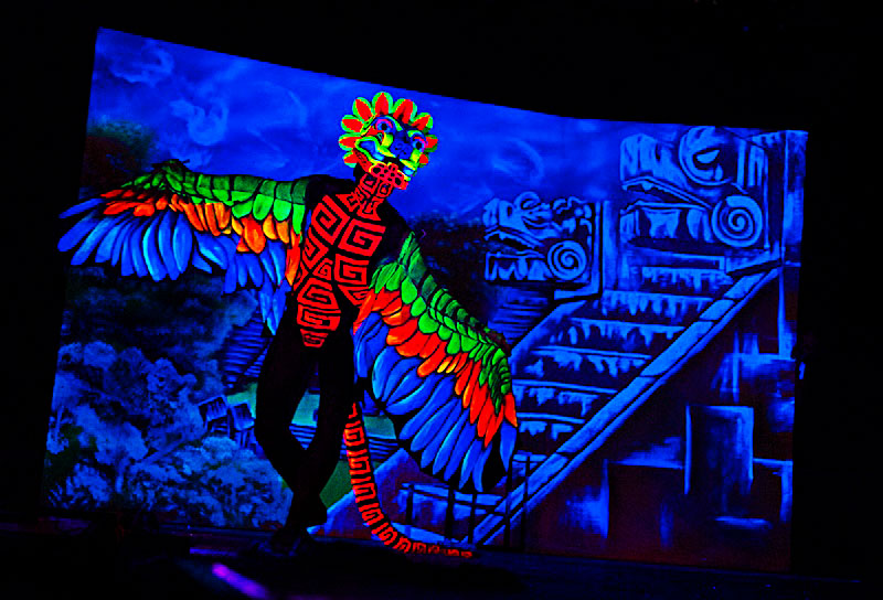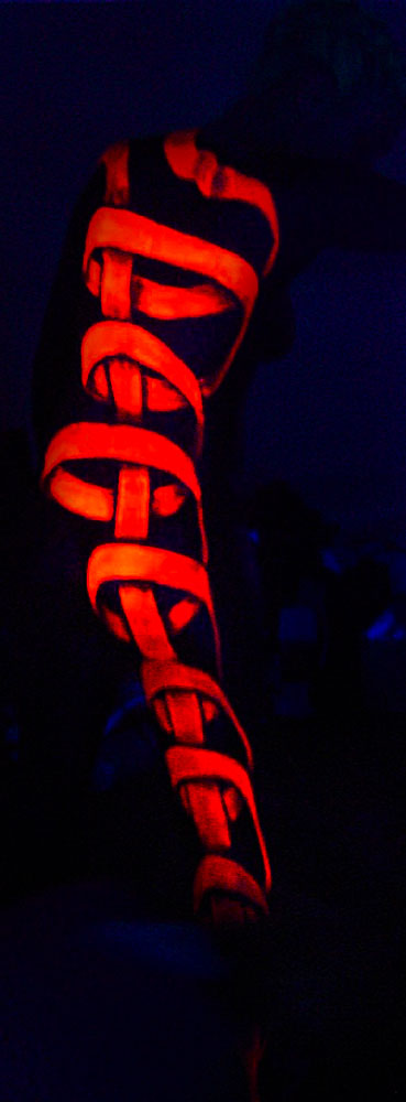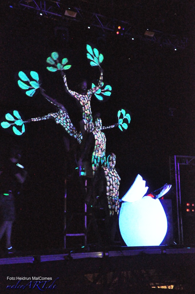der Baum baut sich aus 5 Personen zusammen. Das Ganze ist eine Schwarzlichtperformance